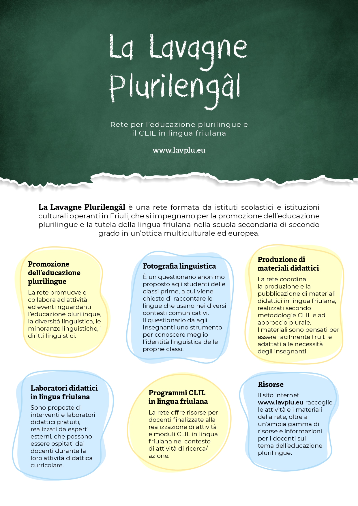 La Lavagne Plurilengâl è una rete formata da istituti scolastici e istituzioni culturali operanti in Friuli, che si impegnano per la promozione dell’educazione plurilingue e la tutela della lingua friulana nella scuola secondaria di secondo grado in un’ottica multiculturale ed europea.